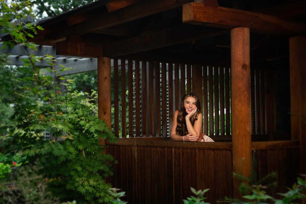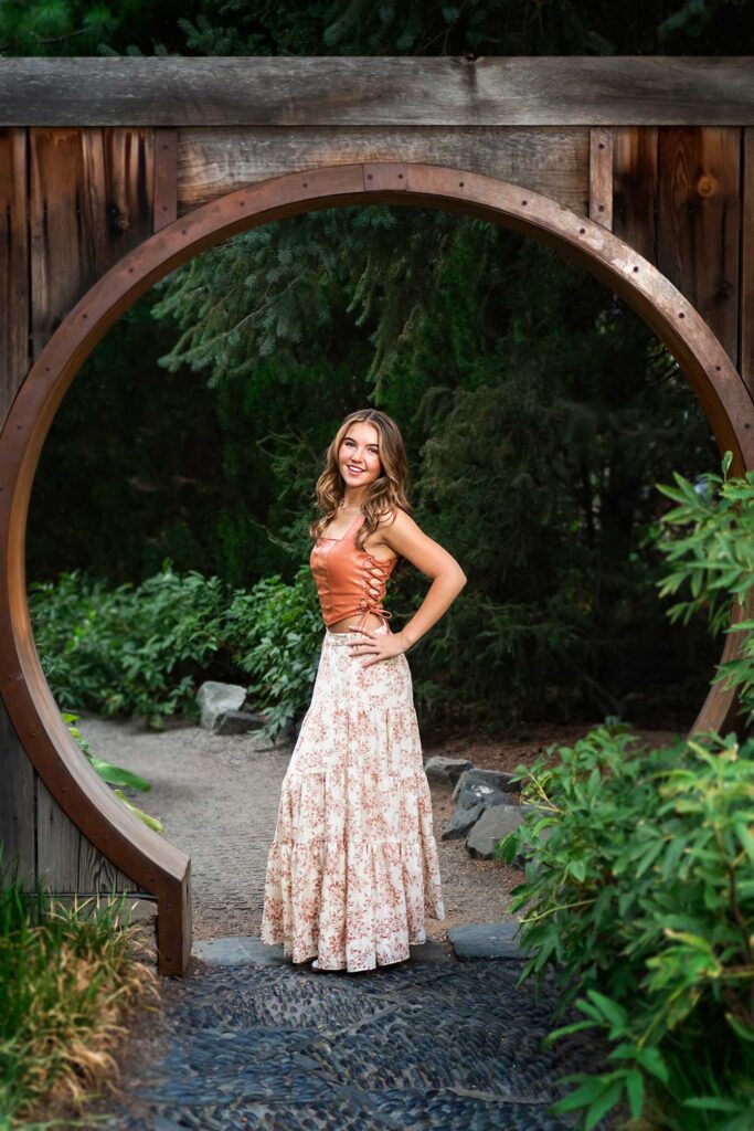 This beautiful Erie High School senior brought a joyful and bubbly personality to her portrait session. With her freckles, blondish-brown hair, and bright smile, she perfectly complemented the natural colors of the gardens. As a world traveler who has explored Thailand and Europe, the internationally inspired landscapes of the gardens reflected her adventurous spirit and love of culture.