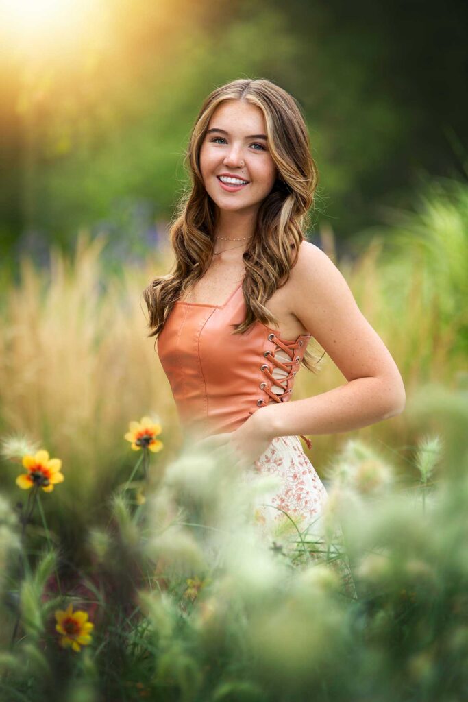 The ornamental grasses and late summer flowers added soft textures and warm golden tones that beautifully framed her portraits. The natural environment allowed her personality to shine—joyful, confident, and full of excitement for the future.